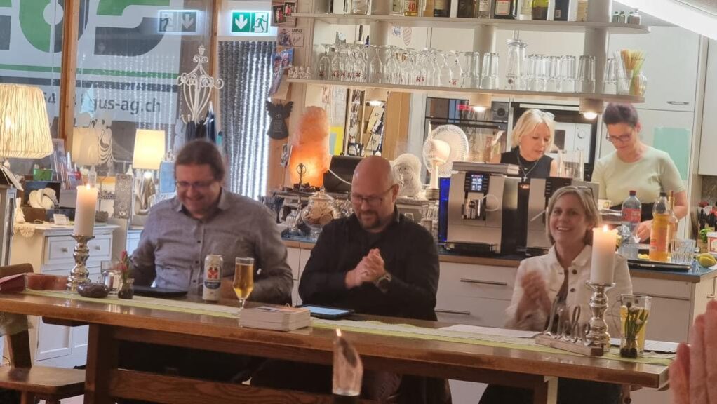 Susann’s Beizli ist mitten in der Woche gut besucht, rund 40 Personen wollen die Kurzdebatte Mäder gegen Rogenmoser mitverfolgen. Positionen prallen aufeinander, dirigiert von Christian Pfaller, SVP-Kantonsrat und ebenfalls auf der Liste 1 für die kommenden NR Wahlen.